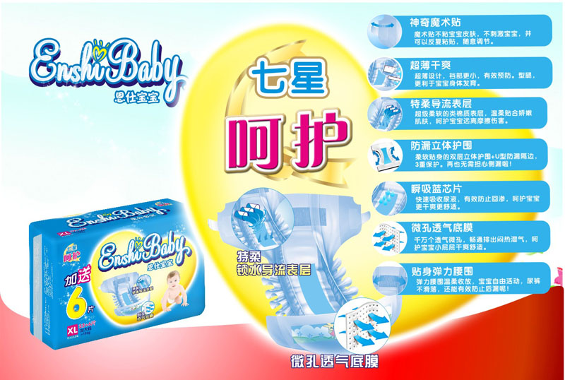深圳市恩仕貿(mào)易有限公司主要研發(fā)生產(chǎn)和經(jīng)營嬰幼兒用品,公司以“良心品質(zhì),呵護希望”為核心指導,研發(fā)出一系列高品質(zhì)的紙尿褲。