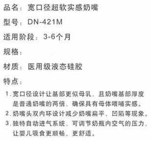 本品采用高級食品級矽膠(Liquid Silicone)制成,無毒、無味、耐高溫120℃可消毒、極好韌性、不易破、更耐用。本品對嬰兒牙床的發(fā)育和牙齦的保護(hù)有特殊效果。能促進(jìn)嬰兒牙齒的正常發(fā)育及臉部肌肉運(yùn)動(dòng)。