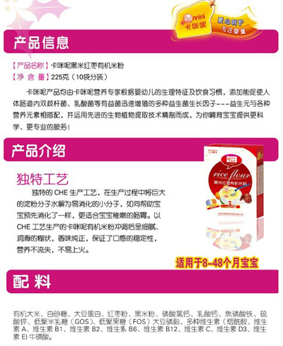 卡咪呢黑米紅棗有機(jī)米粉為寶寶鎖住營(yíng)養(yǎng)