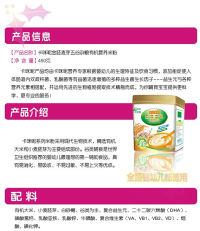 卡咪呢果蔬多維有機(jī)米粉為寶寶提供多種營(yíng)養(yǎng)支持