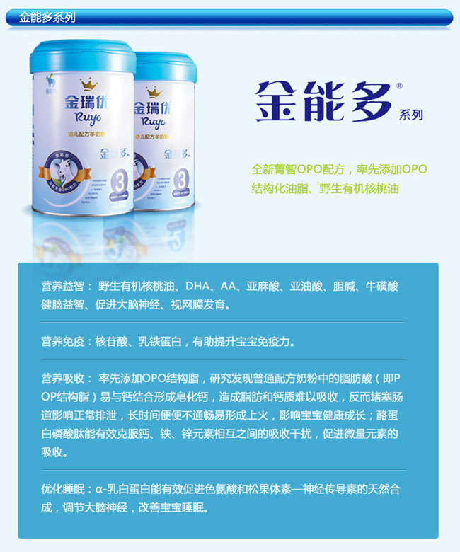 金瑞優(yōu)嬰兒羊奶粉 營養(yǎng)多添加配方更加優(yōu)化