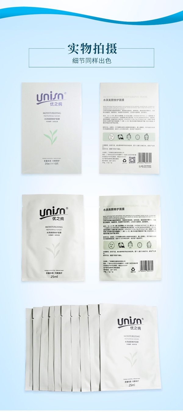 您所在位置:首頁>廣州萬怡生物科技有限公司>優(yōu)之純水潤美顏修護面膜