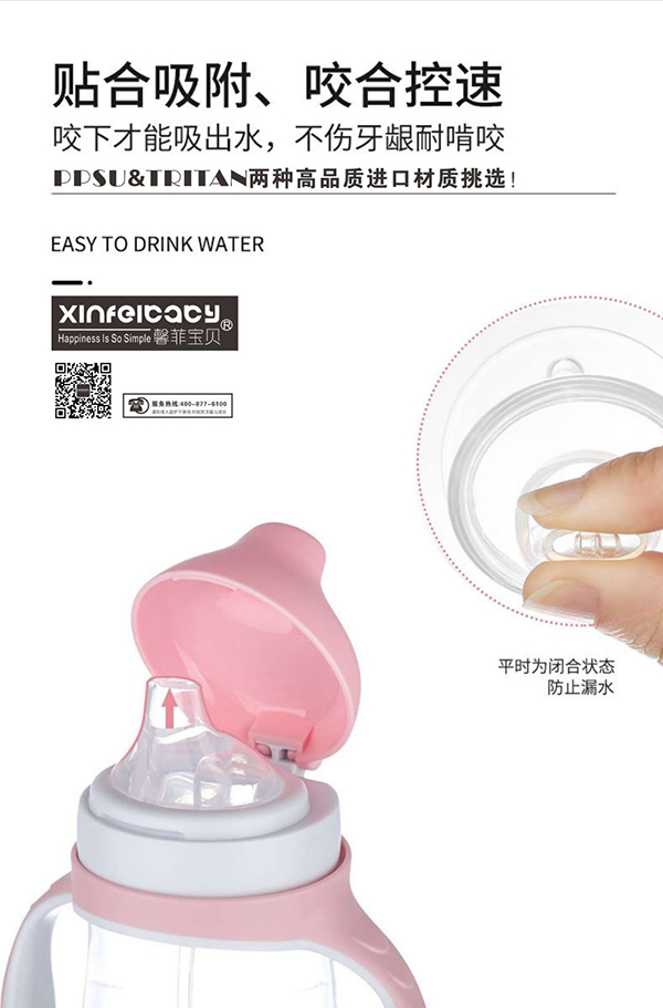 • 馨菲寶貝Tritan防噴防漏兒童學(xué)飲杯D083粉色