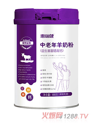 惠瑞健中老年配方奶粉,精選優(yōu)質奶源,采用先進生產工藝制作,添加雨生紅球藻、菊粉+植物甾醇、;撬帷⒍喾N維生素,特別添加七聯(lián)益生菌,富硒高鈣配方,均衡營養(yǎng),更好吸收。