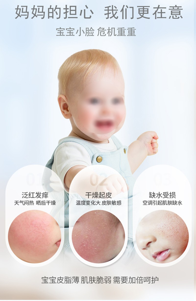 使用方法:取適量本品涂抹于寶寶臉部肌膚避開
