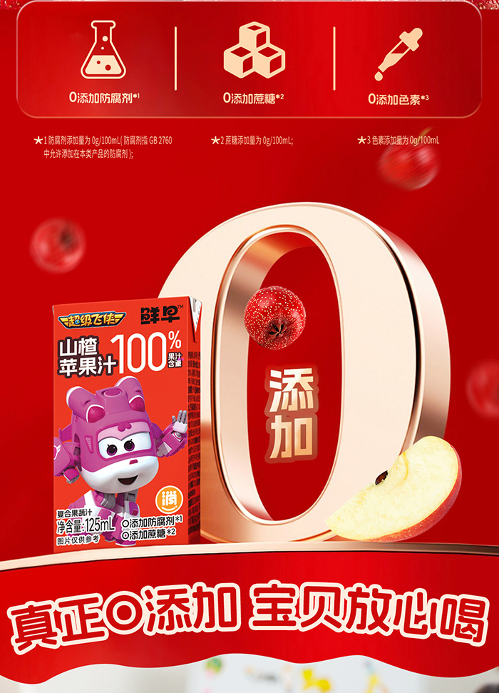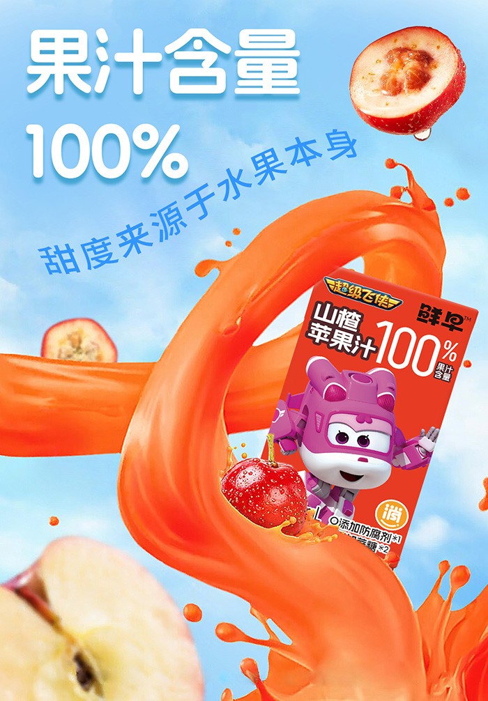 鮮早超級(jí)飛俠100%鮮橙蘋(píng)果汁終端熱賣(mài),深受代理喜愛(ài)