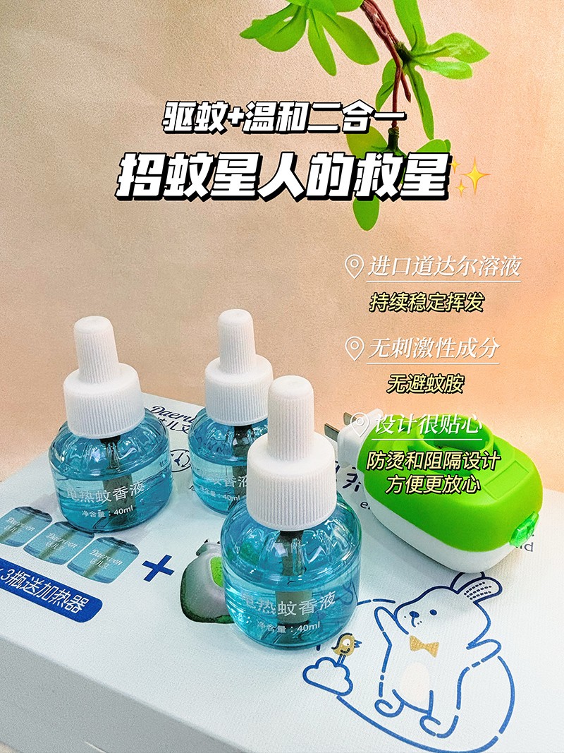 達(dá)兒文電熱蚊香液,溫和驅(qū)趕蚊蟲,無香無煙,溫和有效,安全守護(hù),持久有效。
