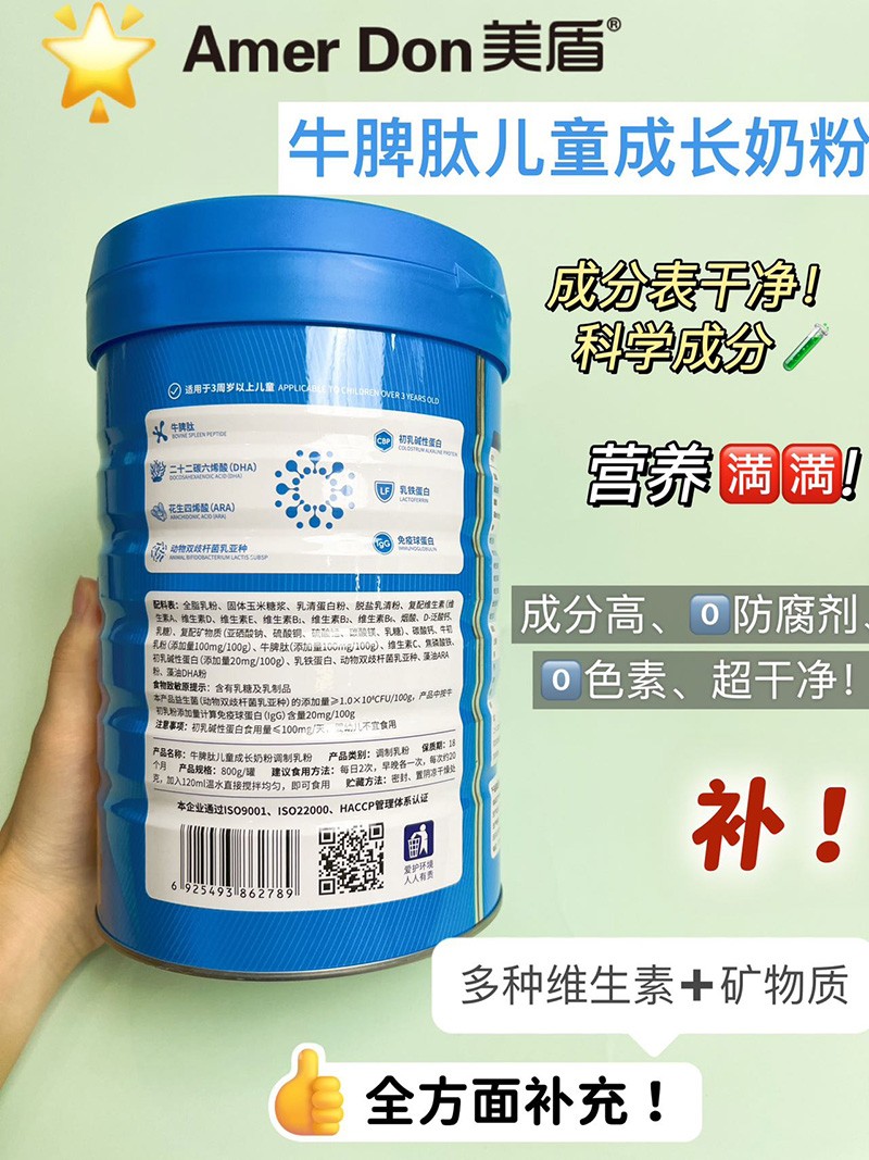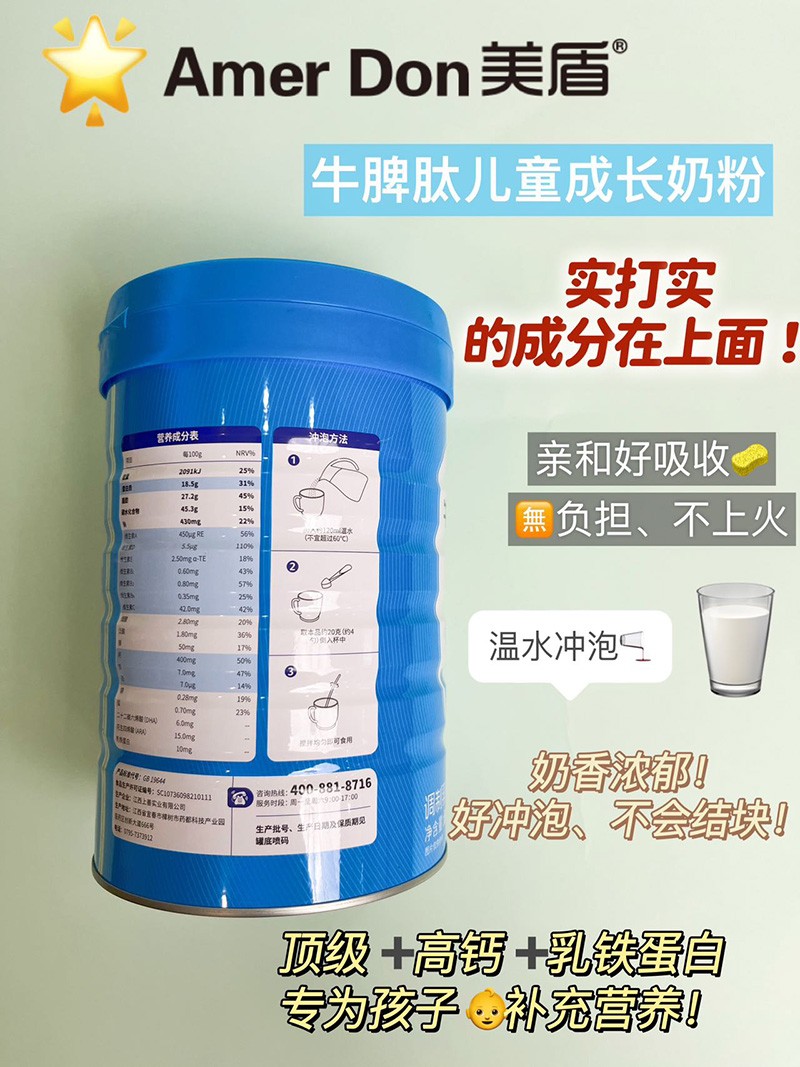 您所在位置:首頁>深圳市奧瑞康生物科技有限公司>美盾牛脾肽兒童成長奶粉
