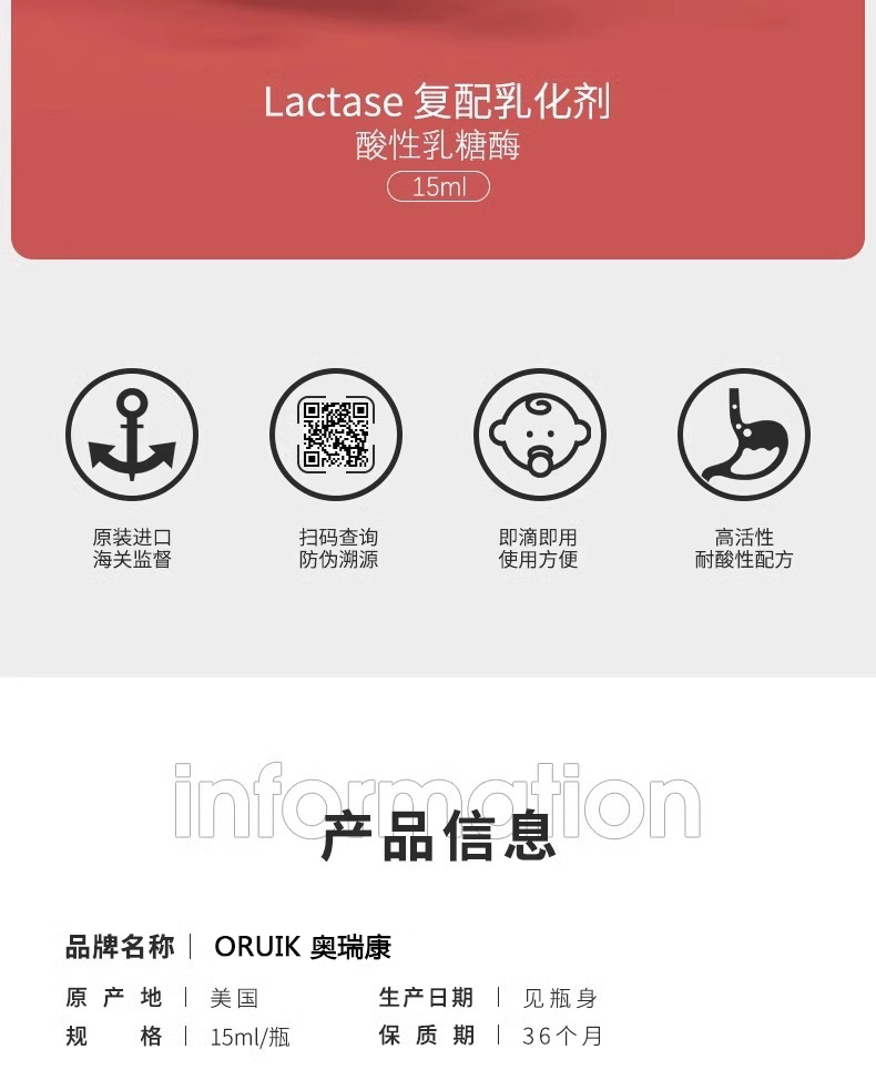②進口酸性乳糖酶每4滴含乳糖酶18000FCC
