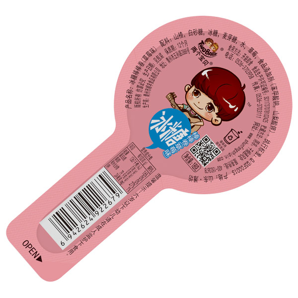 兩個(gè)寶貝山楂制品以山楂為主要原料,添加白砂糖、生活飲用水等為輔料和食品添加劑胭脂紅等,經(jīng)原料挑選、清洗、蒸煮、配料、打漿、攪拌、刮片、烘烤、揭片、切片(條或粉碎、揉球)、烘烤、包裝等工藝制成的。