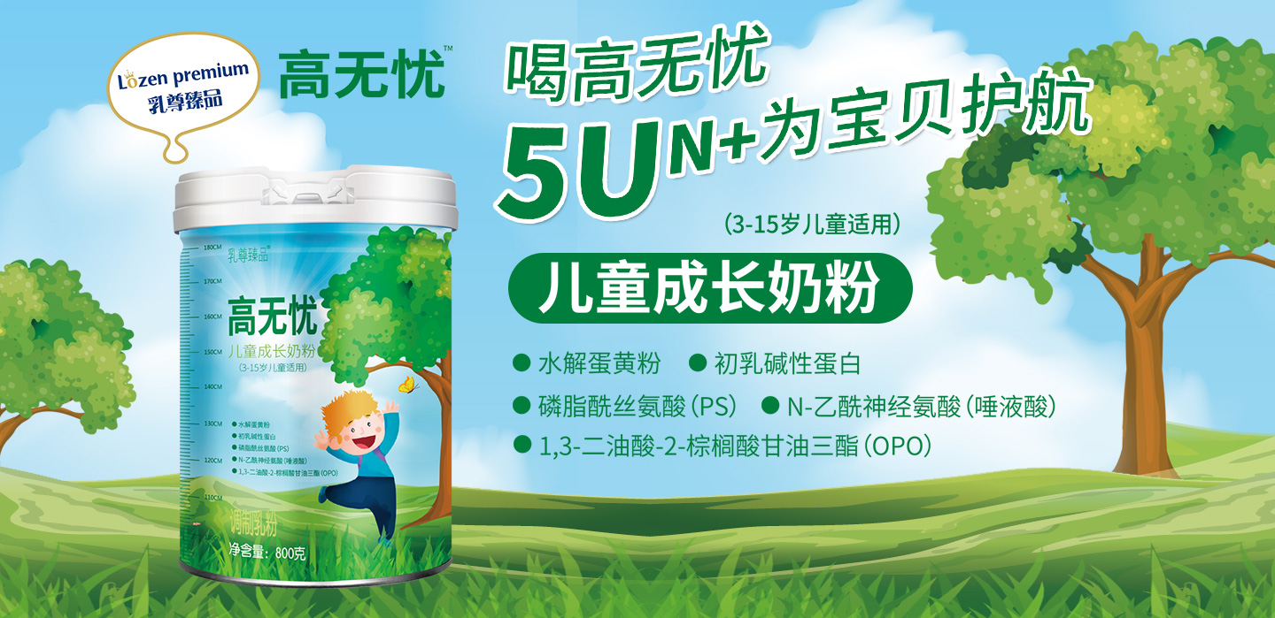 高無憂兒童成長奶粉,5U組合,全面均衡,助力體智活力齊發(fā)展。34種營養(yǎng),15種維生素,9種礦物質(zhì),全面均衡營養(yǎng),激發(fā)孩子全面成長力;(FOS+GOS+IMO)益生元+OPO組合,輕松消化營養(yǎng)好吸收;特添加CBP+水解蛋黃粉,激活骨骼生長原動力。濕法工藝,2小時鎖鮮,營養(yǎng)均勻,先進(jìn)工藝,鑄就高品質(zhì),給兒童帶來“一站式”營養(yǎng)補充,為廣大家庭提供更科學(xué)的哺喂方案。